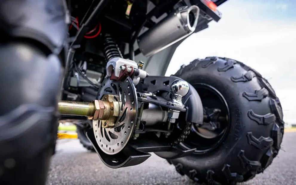 As rodas do ATV 200 são aro 10 e contam com o freio dianteiro e traseiro a disco, proporcionando uma frenagem mais eficiente e rápida. Além disso, ele possui marcha ré.