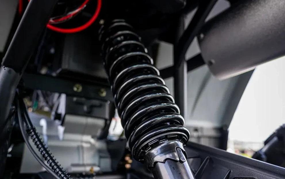 Na parte traseira, conta com suspensão monoshock, absorvendo impactos de maneira eficiente e garantindo maior estabilidade. Na parte dianteira, o ATV 200 possui Double Wishbone.