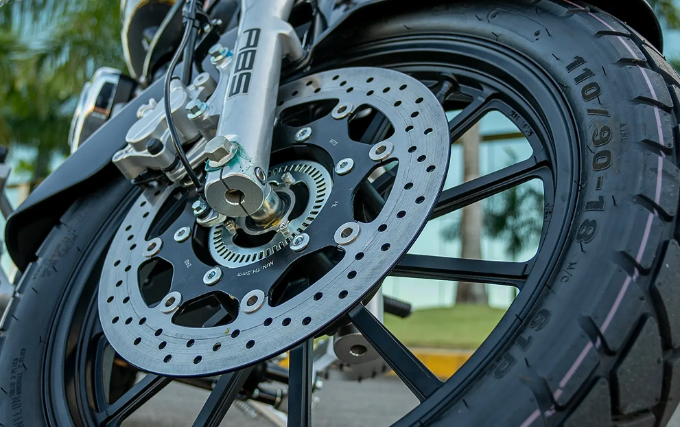 As rodas são de liga leve, garantindo mais estabilidade e aderência ao solo, na dianteira conta com aro 18´´ e aro 15´´ na traseira. Os freios são à disco com sistema ABS de dois canais, possibilitando uma frenagem eficiente e precisa em diversas condições.