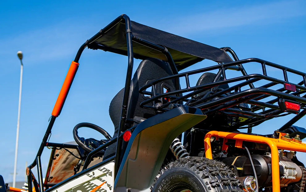 O KART 200s possui um bagageiro traseiro com design compacto e resistente, ele mantém a carga segura e protegida, sem comprometer o desempenho do veículo. Ideal para levar ferramentas, equipamentos de segurança e outros acessórios de forma organizada e acessível.