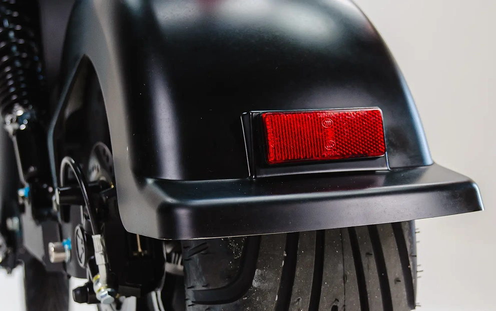 A bateria removível é 60V/20Ah, com autonomia estimada por bateria de até 45km e tempo de carga de 4–6 horas em média.