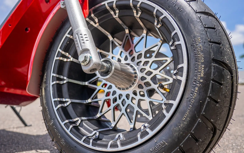 A PT3S possui rodas de liga leve, oferecendo mais resistência e leveza, a roda dianteira e traseira conta com aro 10. Além disso, conta com os freios à disco, oferecendo uma frenagem mais eficiente e rápida.