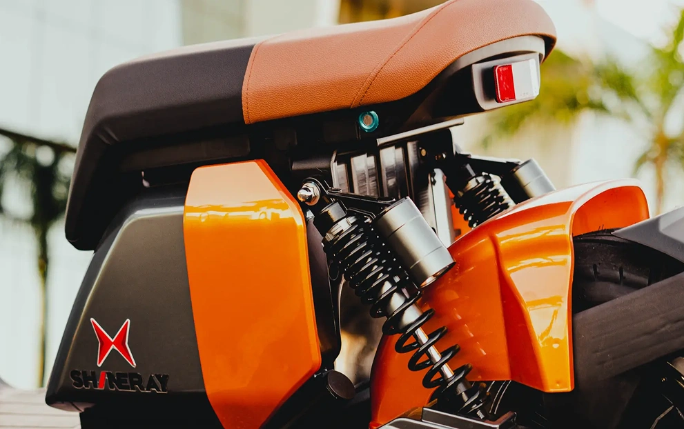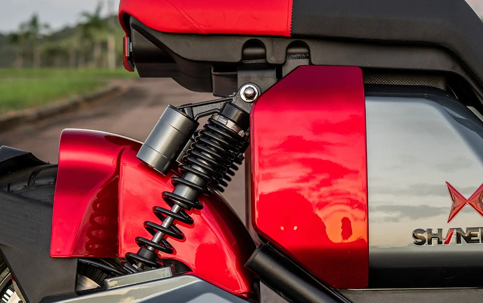 A bateria é removível de 60v 26Ah, com autonomia estimada por bateria de até 40km, e tempo de carga de 4-5 horas em média.