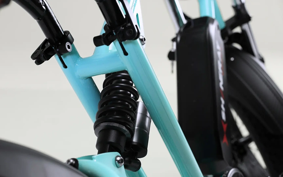 Na roda dianteira e traseira conta com aro 20“, a SE-BIKE PLUS conta possui freio à disco nas duas rodas, oferecendo uma frenagem mais eficiente e rápida.